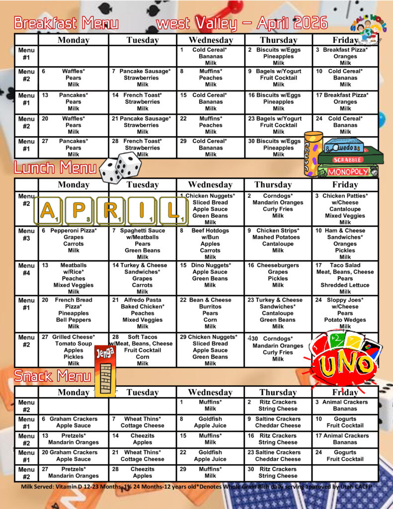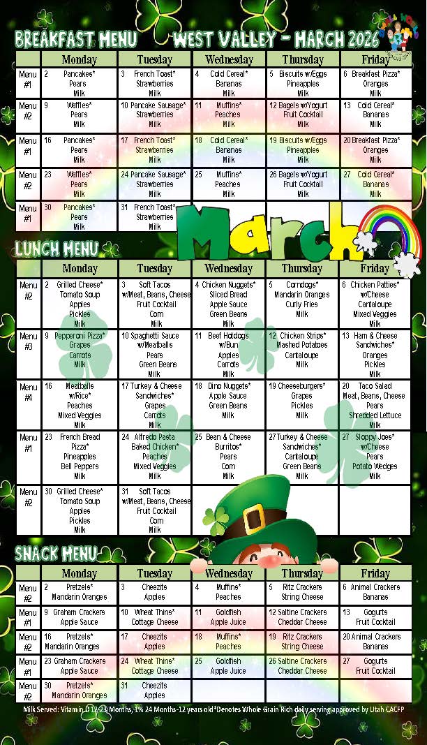 Calendar & Menus – West Valley Location